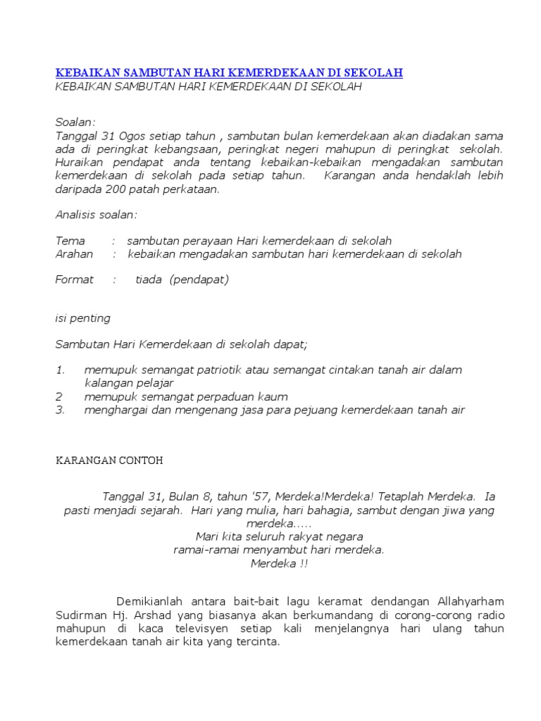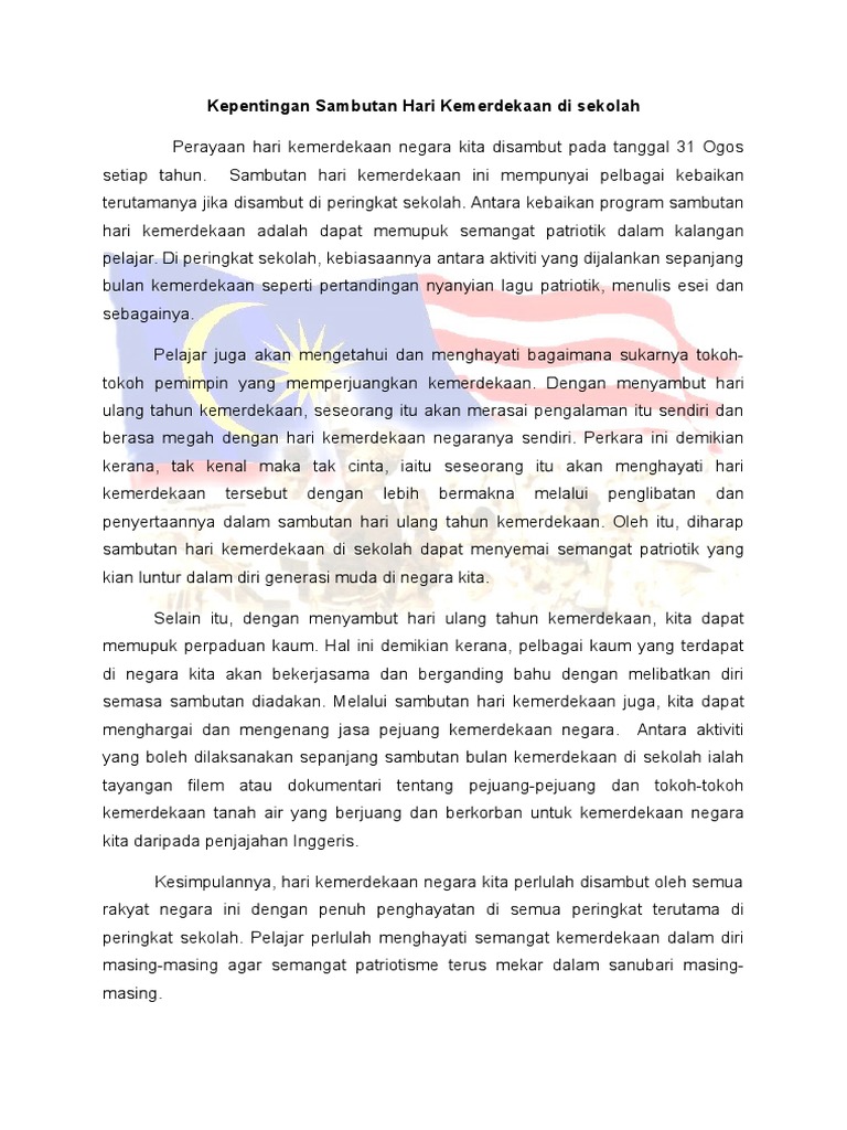 Kepentingan Sambutan Hari Kemerdekaan Di Sekolah Pdf